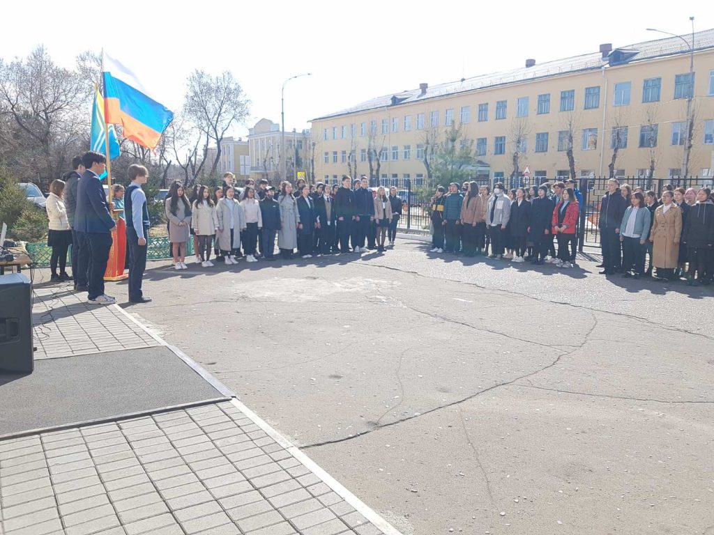 Поднятие флага. Поем гимн.