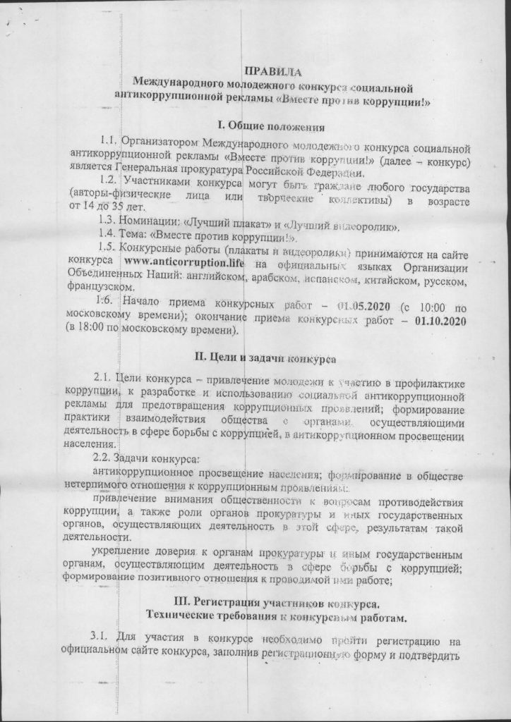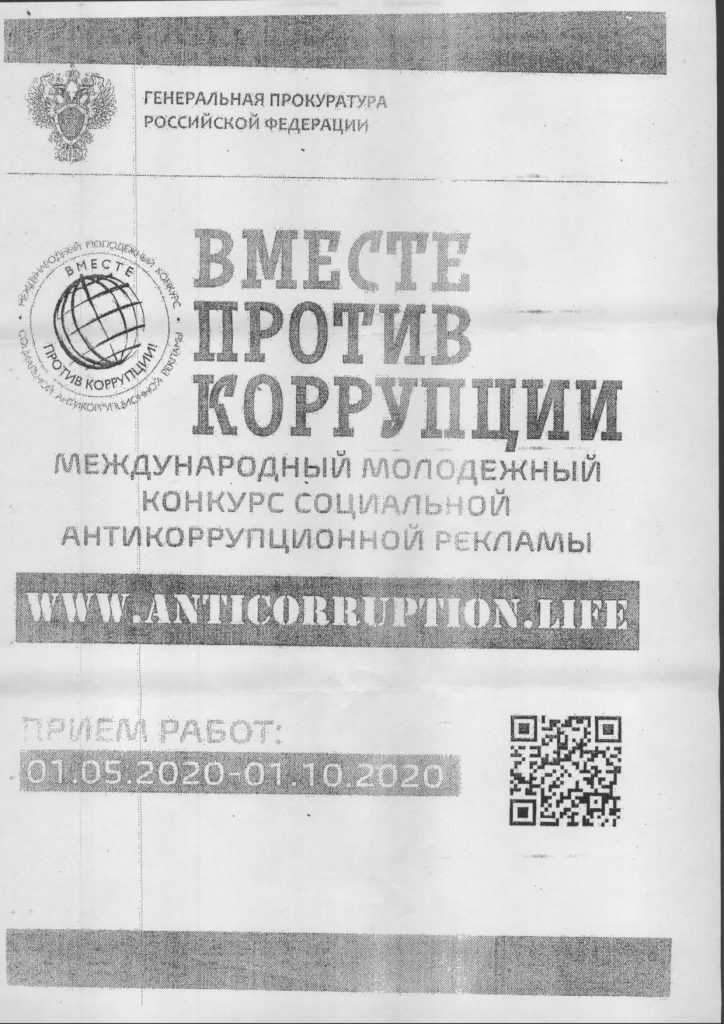 Международный молодежный конкурс социальной антикоррупционной рекламы «Вместе против коррупции» 03.06.2020 /