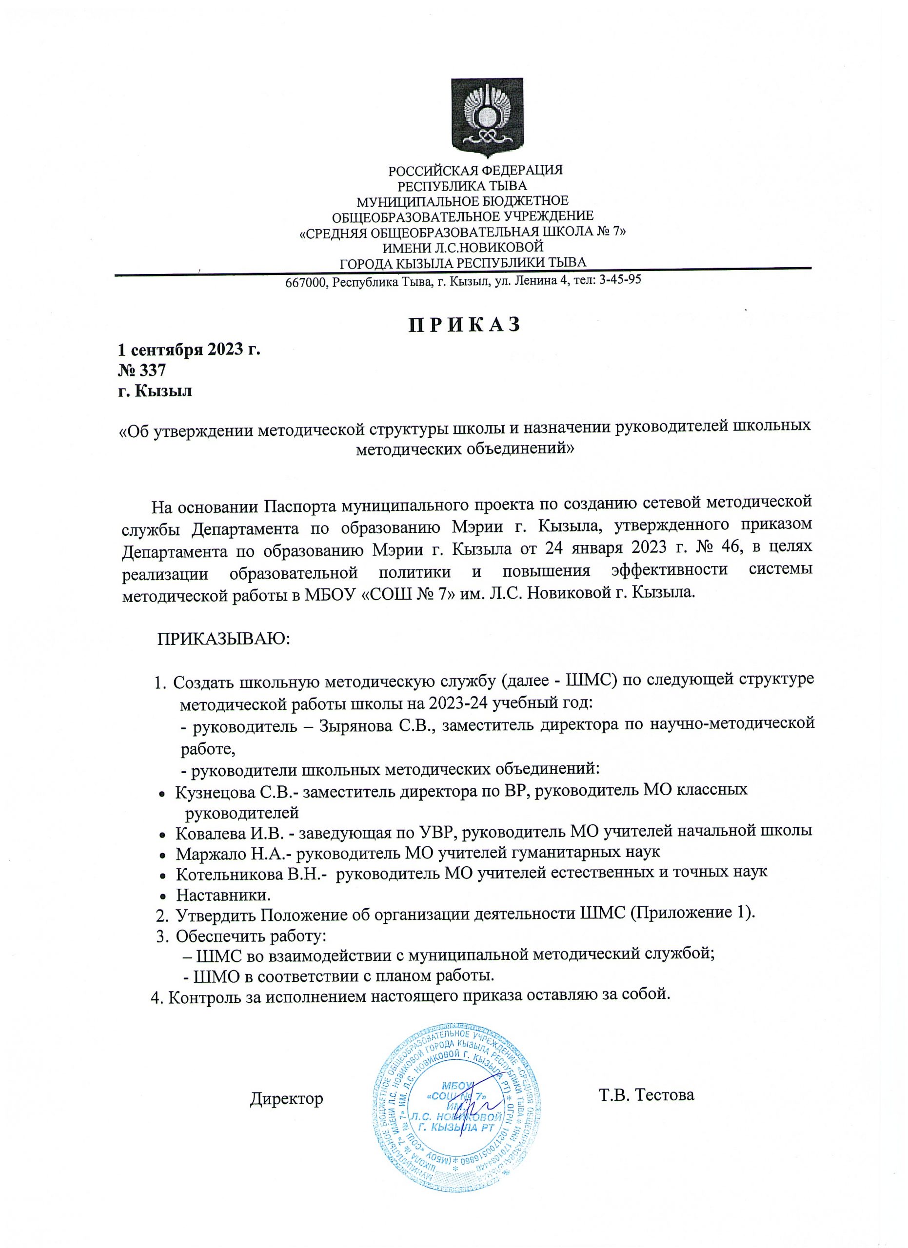 Приказ ДпО Мэрии г. Кызыла по РТ об утверждении Паспорта муниципального проекта по созданию сетевой МС г. КызылаСкачать