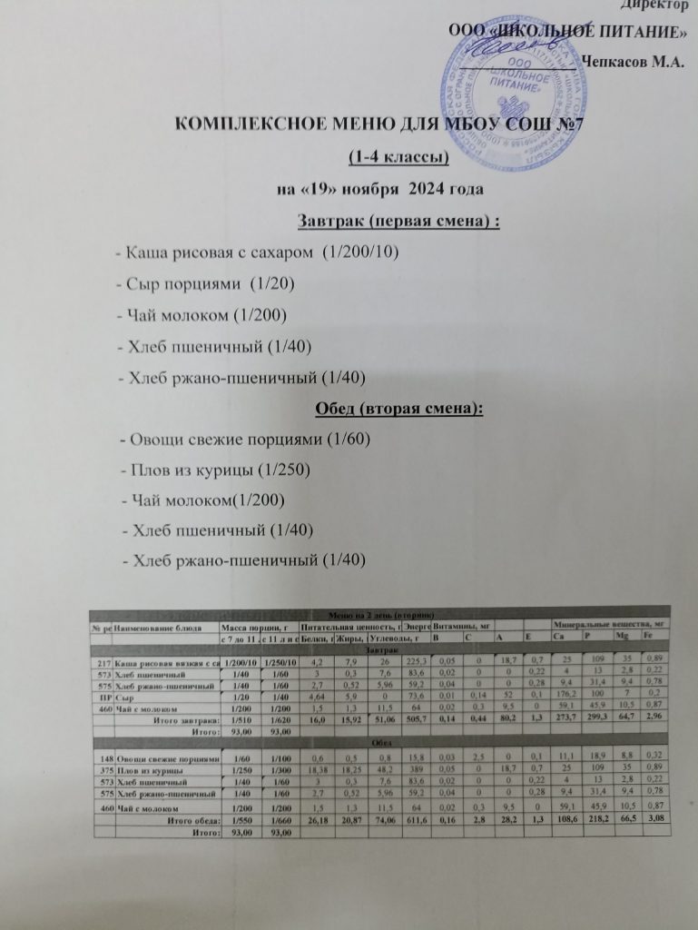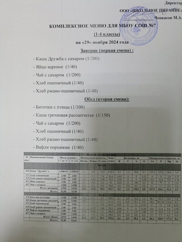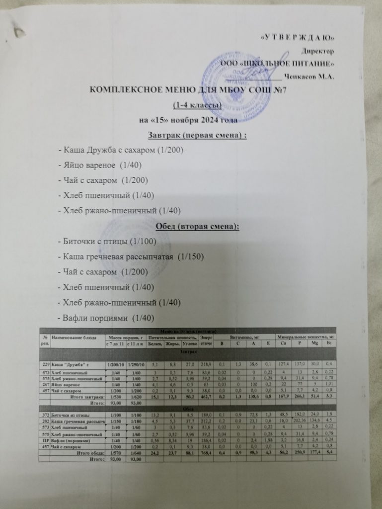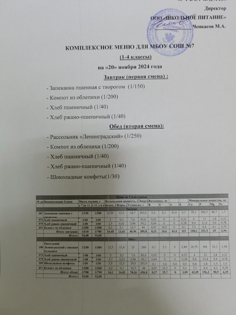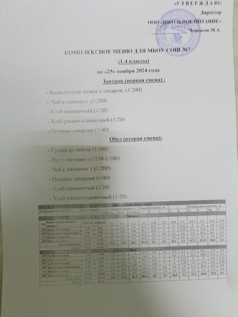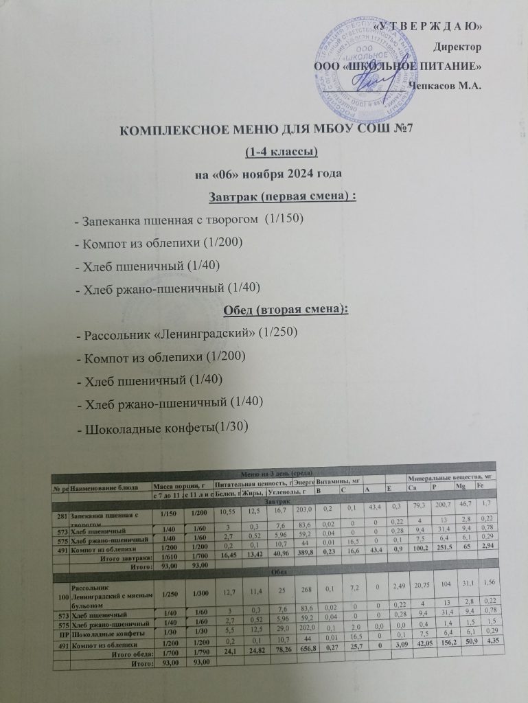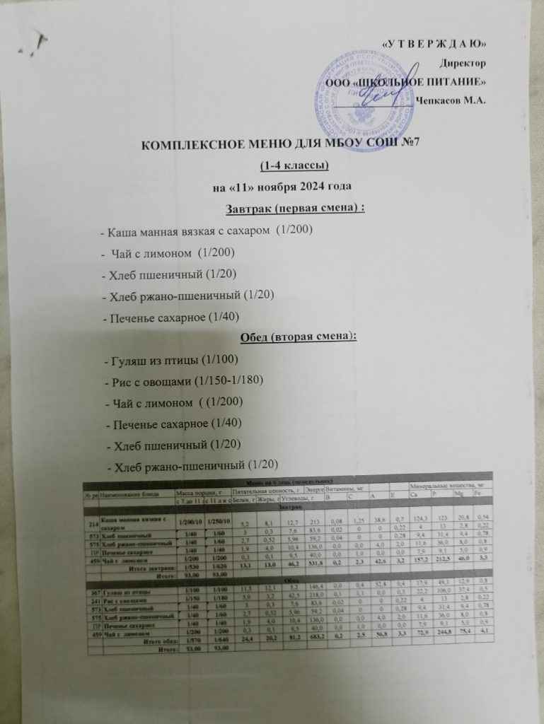Ежедневное меню ноябрь 2024