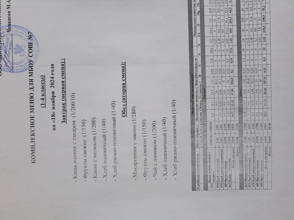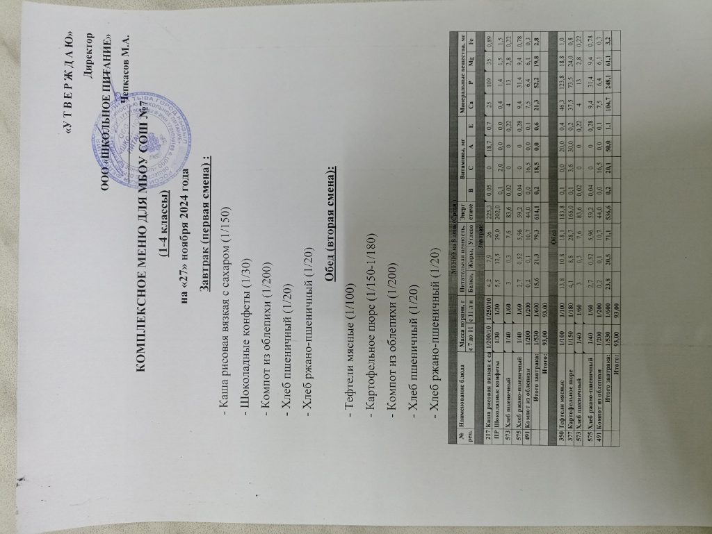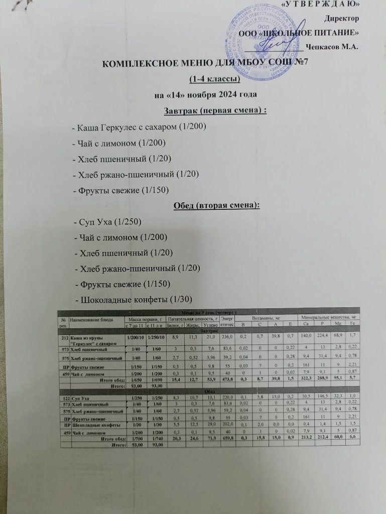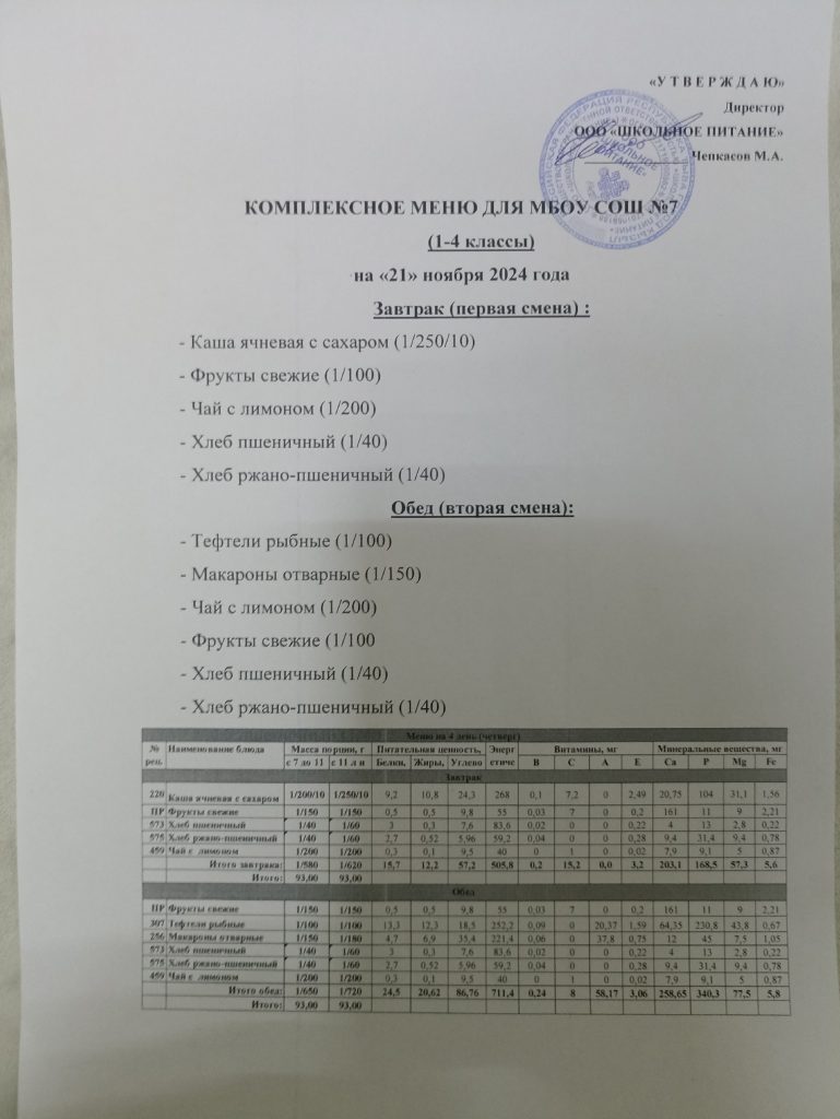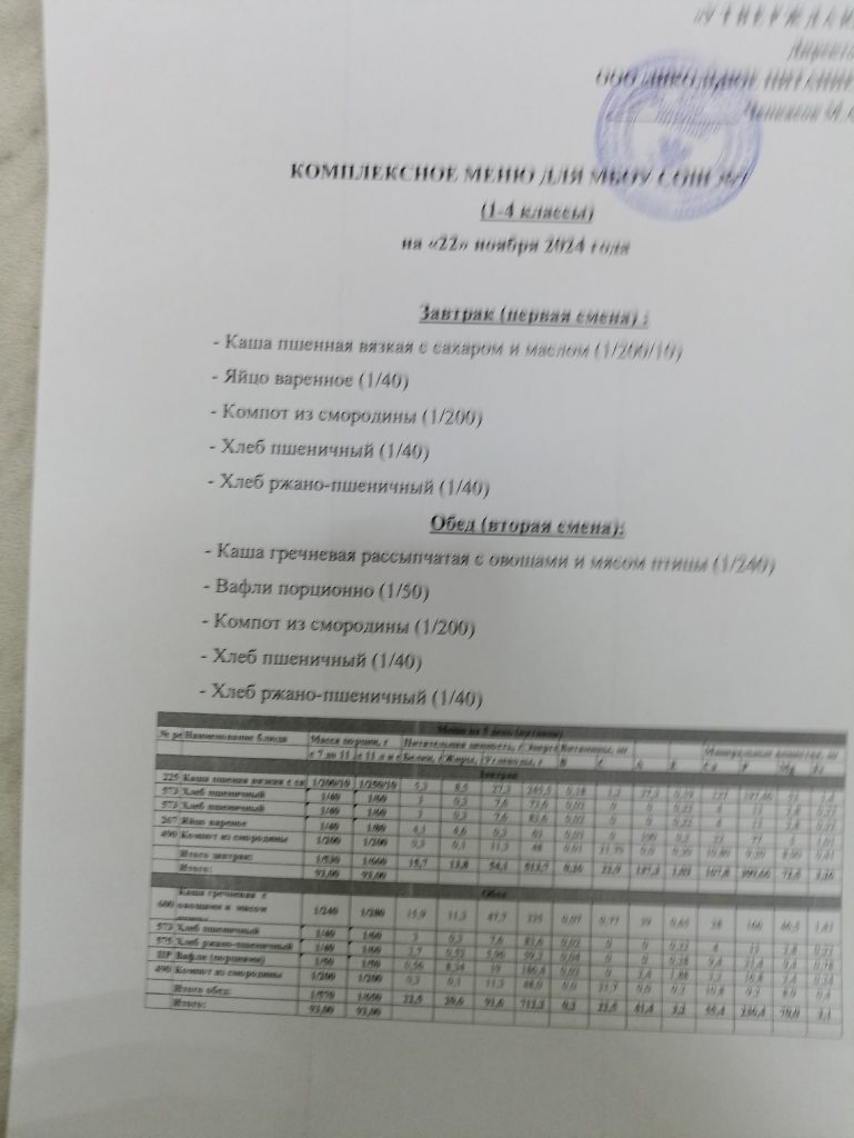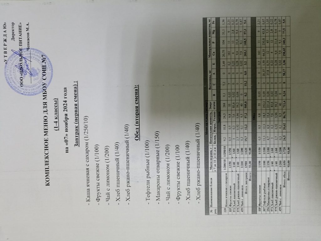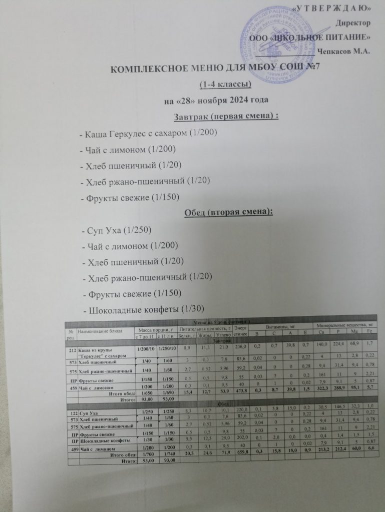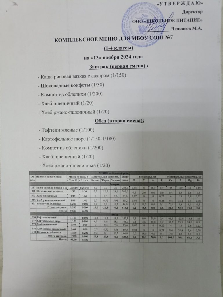 Ежедневное меню ноябрь 2024